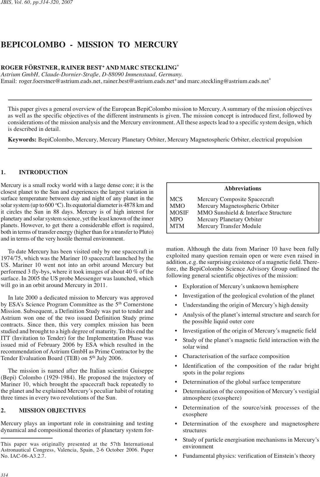 R. Forstner; R. Best; M. Steckling (2007), JBIS60, 314-320
