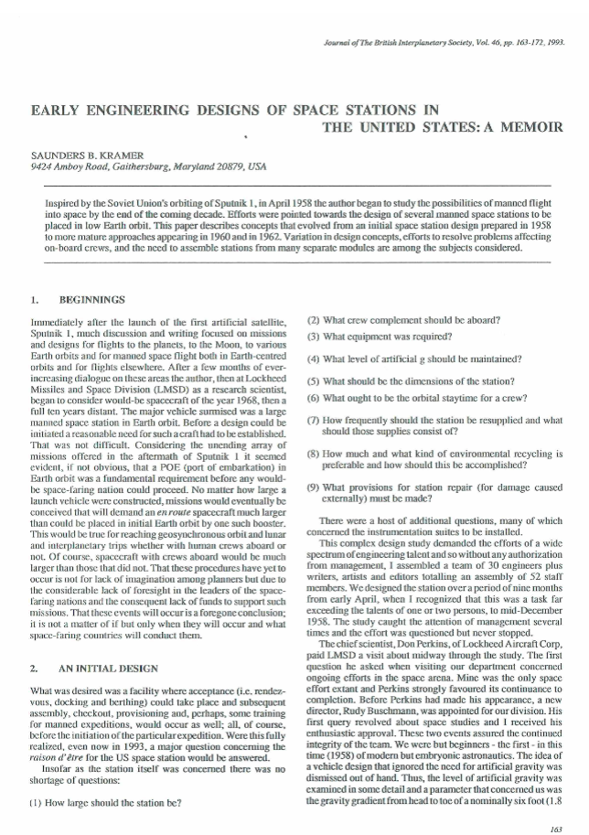 S. B. Kramer. (1993), JBIS, 46, pp.163-172