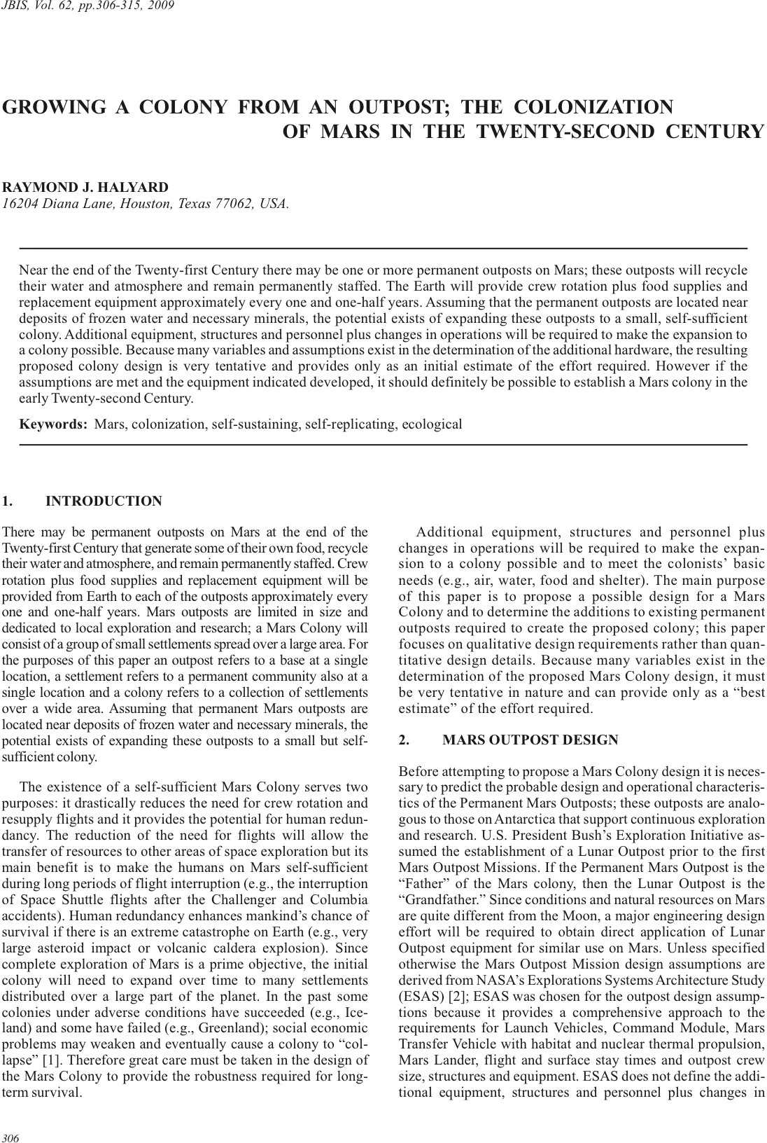 Growing a Colony from an Outpost – The Colonization of Mars in the Twenty-Second Century
