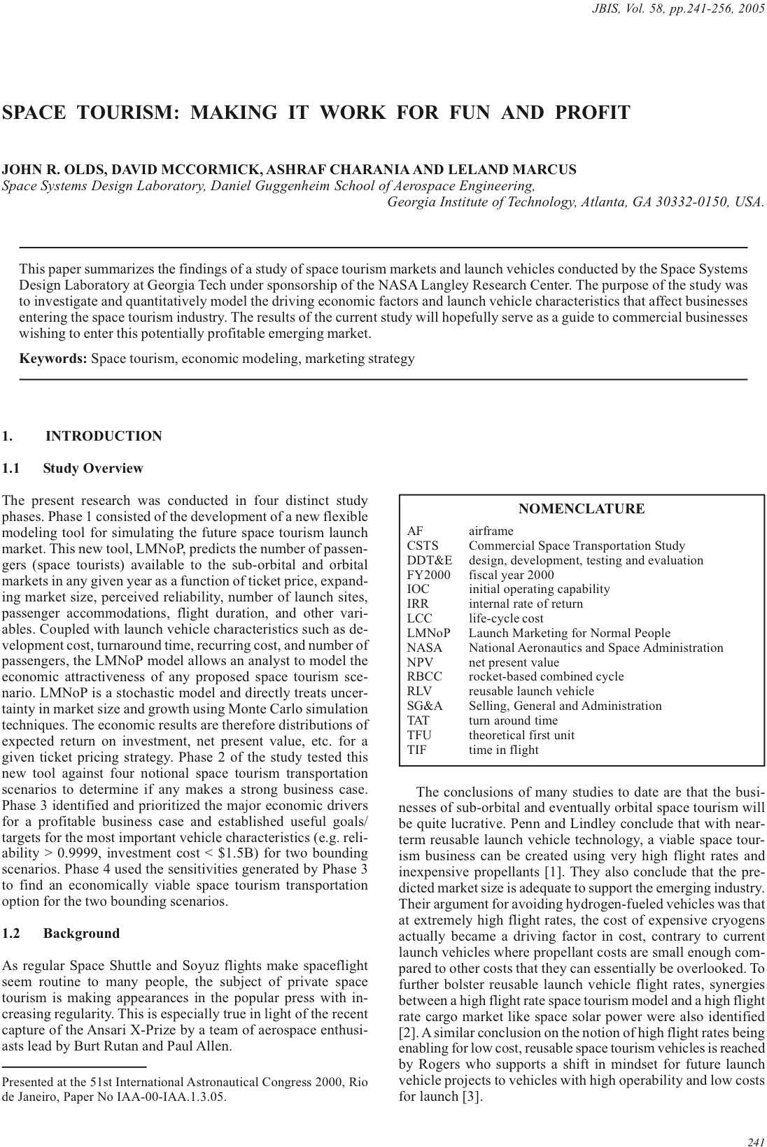 J. R. Olds; D. McCormick; A. Charania; L. Marcus (2005), JBIS, 58, 241-256
