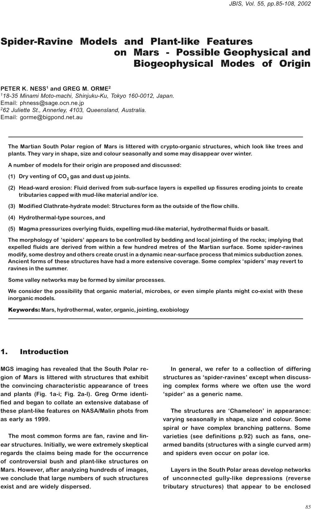 Spider-Ravine Models and Plant-Like Features on Mars – Possible Geophysical and Biogeophysical Modes of Origin