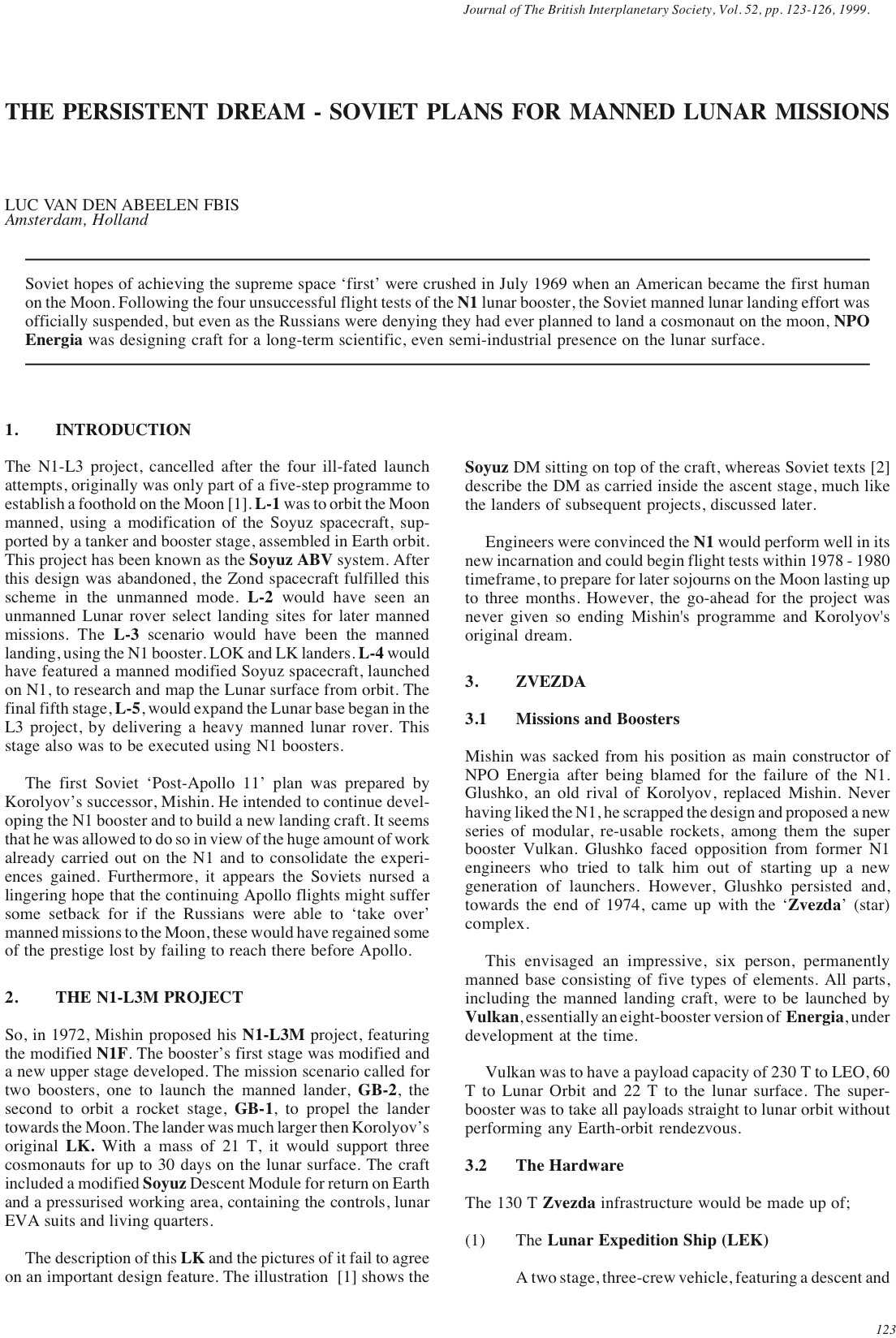 L. Van Den Abeelen (1999), JBIS, 52, 123-126