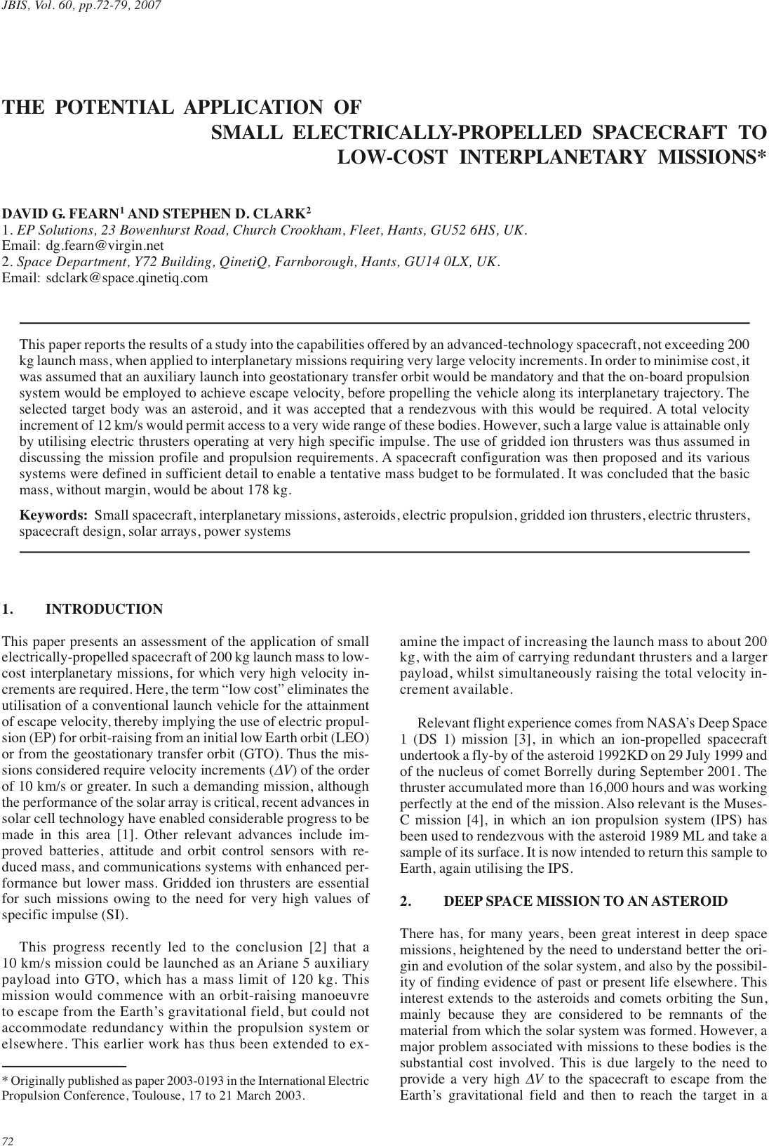 D. G. Fearn; S. D. Clark (2007), JBIS, 60, 72-79